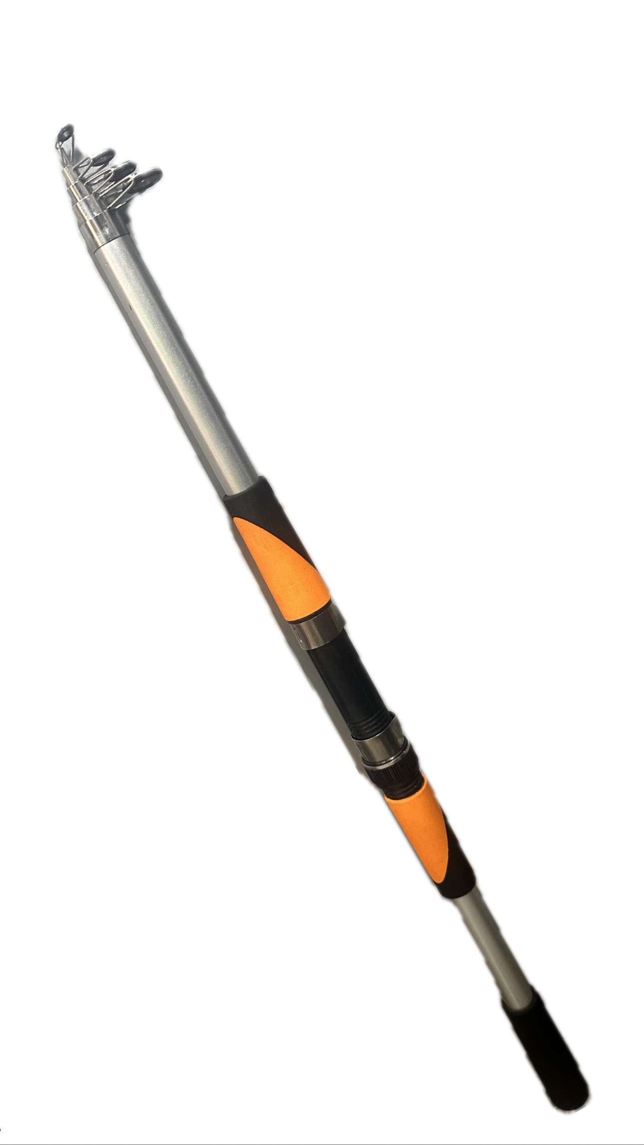 Kamışın genel gri rengi, profesyonel bir teknik ekipman görüntüsü verirken; sap kısmında kullanılan turuncu ve siyah desenler, ürüne sportif ve dikkat çekici bir hava katar. Teleskopik parçaların birleşim noktaları, yüksek basınç altında kayma veya dönme yapmayacak şekilde hassas işlenmiştir. Halkalar, sürtünmeyi minimize eden ve ısıya dayanıklı porselen iç yüzeylerle donatılmıştır.